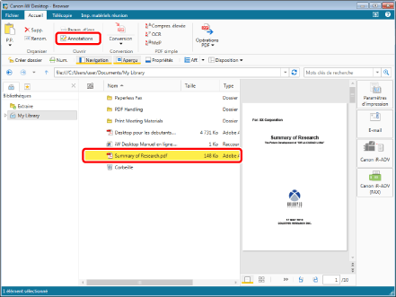 Les informations relatives à la position des annotations, définies lors de l'enregistrement dans les favoris, sont également sauvegardées.