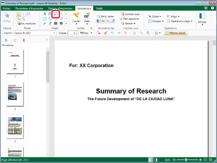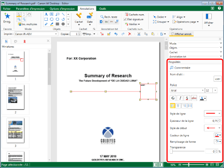 Même lorsque des annotations sont regroupées, vous pouvez sélectionner des annotations individuelles du groupe pour modifier les propriétés et le texte, etc.