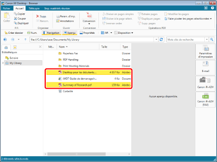 Si vous sélectionnez [Ne pas conserver le document original], les deux documents divisés sont enregistrés dans la bibliothèque, et le document original n'y est pas conservé.