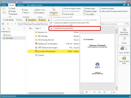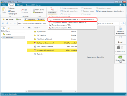 Si vous sélectionnez [Convertir en document PDF], les documents sont convertis séparément.