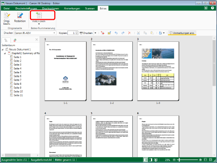 Wenn Sie mehrere Dokumente in PDF-Dokumente konvertieren, werden zu jedem Dokument Seitenzahlen hinzugefügt.