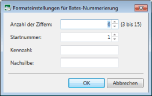 Eine Nummer, die die unter [Anzahl der Ziffern] angegebene Anzahl von Ziffern überschreitet, kann nicht als [Startnummer] festgelegt werden. Eine Nummer, die die angegebene Anzahl von Ziffern überschreitet, wird jedoch festgelegt, wenn die Anzahl von Ziffern erst beim Hinzufügen der Anhänge an die Bates-Nummer überschritten wird.