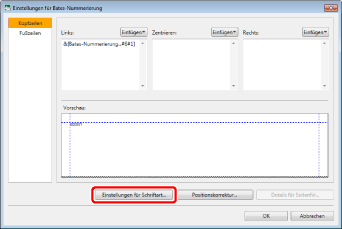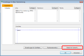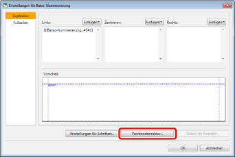 Um die Anzeigeposition für die Bates-Nummer auf die Standardposition zurückzusetzen, klicken Sie auf [Standard wiederherstellen].