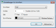 Wählen Sie die zu verwendende Schriftart aus. In der Liste werden die auf dem verwendeten Computer installierten Schriftarten angezeigt.