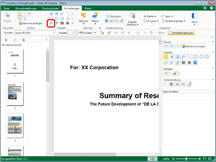 Dieser Vorgang kann auch über die Schaltflächen durchgeführt werden. Wenn bestimmte Schaltflächen in der Symbolleiste von Desktop Editor nicht angezeigt werden, gehen Sie wie folgt vor, um sie anzuzeigen.