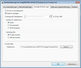 Hiermit können Sie die Bilddatei auswählen, die als Druckersymbol des Quick Printing Tools verwendet wird.