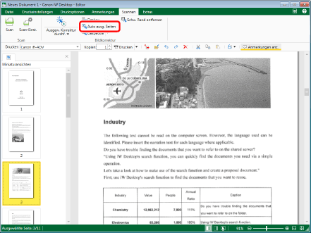 Bei der Korrektur der Ausrichtung kann es außerdem vorkommen, dass die Seite gedreht wird.