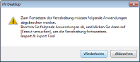 Je nach Ihrer Systemumgebung wird möglicherweise während der Installation ein Dialogfeld mit der Aufforderung angezeigt, bestimmte Anwendungen zu beenden. Führen Sie die angezeigten Schritte aus, um die Installation von Desktop fortzusetzen.