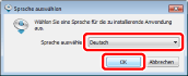 Installationsbildschirme werden bei den nachfolgenden Schritten in der ausgewählten Sprache angezeigt.