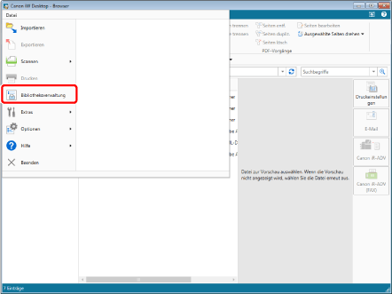 Wählen Sie im Menü [Datei] > [Bibliotheksverwaltung].