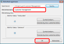 Legen Sie zum Ändern des [Bibliotheksnames] den gewünschten Namen fest und klicken Sie auf [OK].