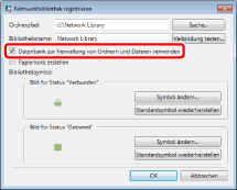 Nähere Informationen zum Kontrollkästchen [Datenbank zur Verwaltung von Ordnern und Dateien verwenden] finden Sie im Anwenderhandbuch.