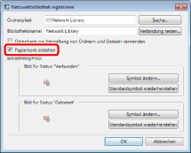 Aktivieren Sie zum Erstellen eines Papierkorbs in der Netzwerkbibliothek das Kontrollkästchen [Papierkorb erstellen].