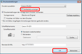 [Detaileinstellungen für imageRUNNER ADVANCE Desktop Quick Printing Tool] wird angezeigt.