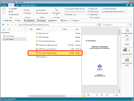 Wenn Sie [Originaldokument beibehalten] auswählen, werden die zwei geteilten Dokumente in der Bibliothek gespeichert, und das Originaldokument vor dem Teilen bleibt in der Bibliothek.