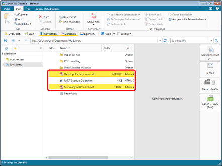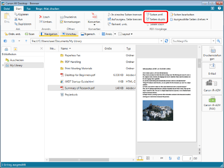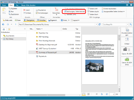 Wenn Sie [Originaldokument nicht beibehalten] auswählen, werden die zwei geteilten Dokumente in der Bibliothek gespeichert. Das Originaldokument bleibt nicht erhalten.