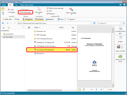Sie können [Hohe Komprimierung] in den Komprimierungseinstellungen zum Erstellen eines kleineren PDF-Dokuments auswählen.
