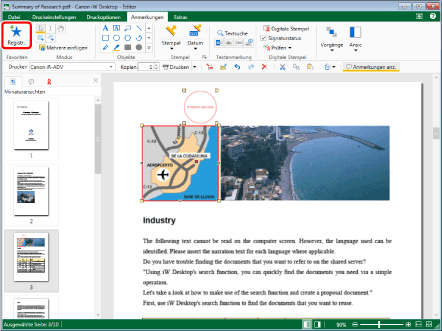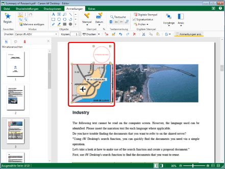 Dient zum Einfügen eines Textstempels, Datumsstempels oder Bildstempels.