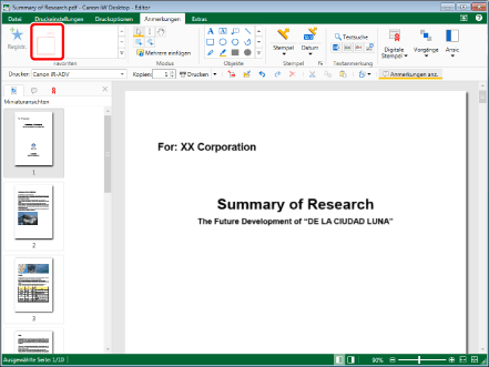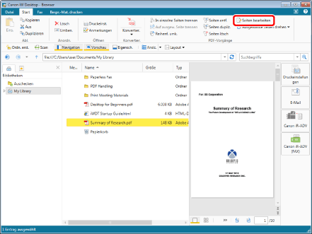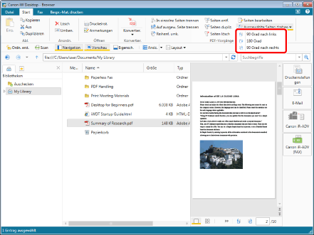 Sie können die Seite auch drehen und das Dokument speichern, indem Sie im Vorschaufenster auf [Ausgewählte Seiten um 90 Grad nach links drehen und speichern] oder [Ausgewählte Seiten um 90 Grad nach rechts drehen und speichern] klicken.
