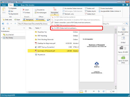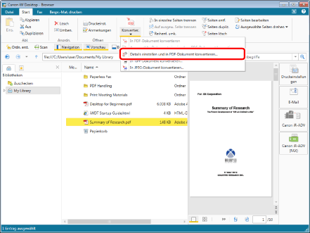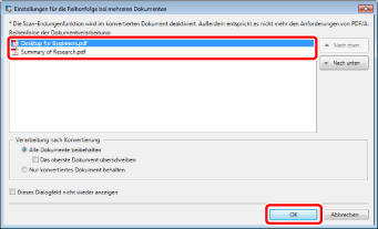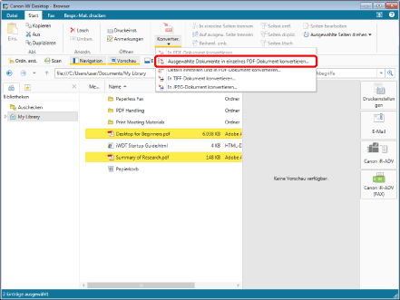 Wenn Sie [In PDF-Dokument konvertieren] auswählen, werden die Dokumente nacheinander konvertiert.