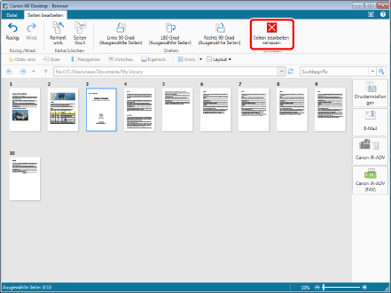 Sie können mehrere Seiten auswählen, indem Sie auf diese klicken und gleichzeitig die [Umschalt]- oder [Strg]-Taste auf der Tastatur gedrückt halten.