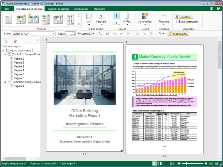 Salvando un documento in formato IWB, è possibile salvare insieme al documento anche le impostazioni di stampa, come il layout, specificate in Desktop Editor.