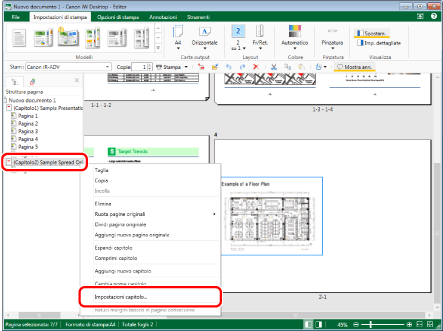 Nella Struttura pagina, selezionare "(Capitolo 2) Sample Spread Original", quindi fare clic con il pulsante destro del mouse e selezionare [Impostazioni capitolo].