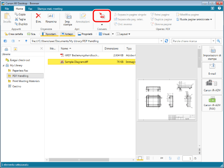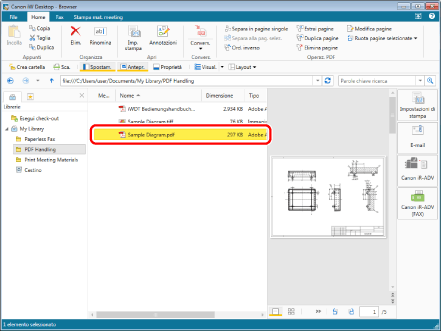 Selezionare il file "Sample Diagram.pdf" creato in "Conversione in formato PDF", quindi fare clic su
