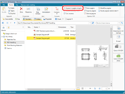 È possibile dividere un documento PDF in pagine singole senza aprirlo. Modificando l'ordine di visualizzazione del documento PDF diviso, è possibile riorganizzare le pagine.