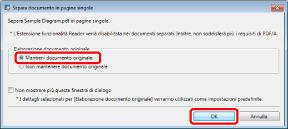 Verificare che sia stata selezionata l'opzione [Mantieni documento originale] e fare clic su [OK]. Il file PDF viene diviso in pagine singole e salvato nello stesso percorso.