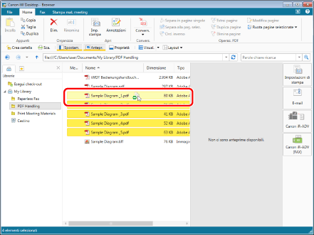 Trascinare i documenti selezionati e rilasciarli in "Sample Diagram _1.pdf".