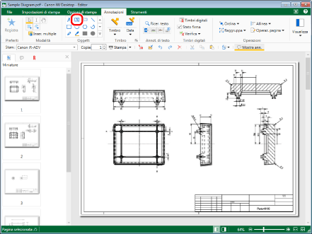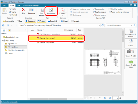 Selezionare il file "Sample Diagram.pdf" creato in "Conversione in formato PDF", quindi fare clic su [Annotazioni] nella scheda [Home].