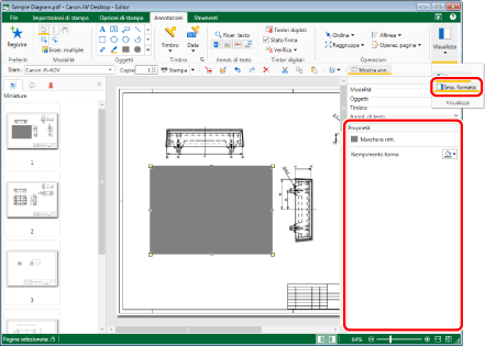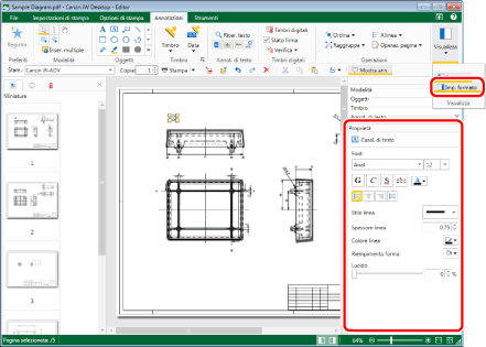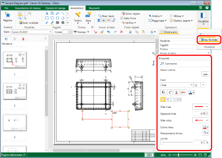 Fare clic sul gruppo [Visualizza] > [Imp. formato] nella scheda [Annotazioni] e configurare le proprietà dell'annotazione.