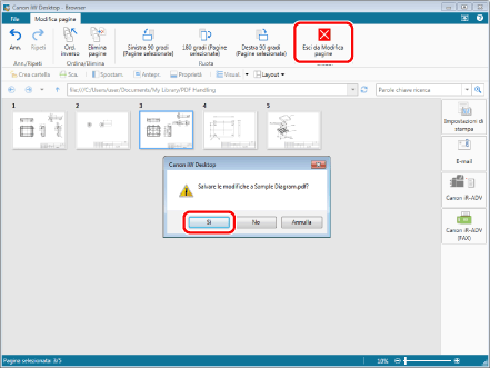 Fare clic su [Esci da Modifica pagine] nella scheda [Modifica pagine], quindi fare clic su [Sì] nel messaggio di conferma visualizzato. Il documento viene salvato.