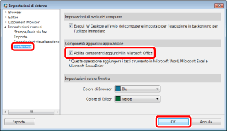 Fare clic su [Impostazioni comuni] > selezionare la casella di controllo [Abilita componenti aggiuntivi in Microsoft Office] in [Preferenze] e fare clic su [OK].