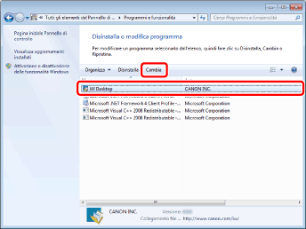 Se si utilizza Windows 8.1, visualizzare Pulsanti e selezionare [Impostazioni] > [Pannello di controllo] > [Programmi] > [Programmi e funzionalità].