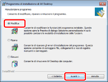 Il programma può essere modificato selezionando [Cambia] in [Manutenzione programma] dell'Installazione guidata di iW Desktop avviata utilizzando il "Supporto d'installazione di Desktop".