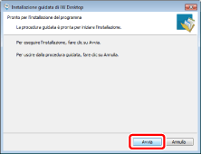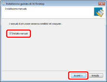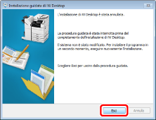 ![]() Fare clic su [Annulla] se non si desidera installare la Guida per l'utente. Viene visualizzato un messaggio di conferma dell'eventuale annullamento dell'installazione. Fare clic su [Sì] > [Esci] per annullare la modifica.