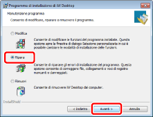 Il programma può essere ripristinato selezionando [Ripara] in [Manutenzione programma] dell'Installazione guidata di iW Desktop avviata utilizzando il "Supporto d'installazione di Desktop".