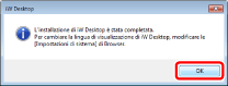 Se è stata aggiunta una lingua di visualizzazione, compare la seguente schermata. Confermare il messaggio visualizzato e fare clic su [OK]. Per informazioni su come cambiare la lingua di visualizzazione, vedere la "Guida per l'utente".