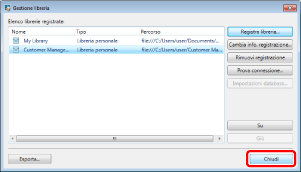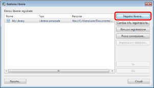 Verificare che la destinazione sia stata aggiunta a [Elenco librerie registrate] e fare clic su [Chiudi].