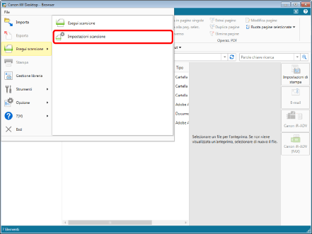 Selezionare il menu [File] > [Esegui scansione] > [Impostazioni scansione].