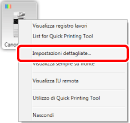 Fare clic con il pulsante destro del mouse su Quick Printing Tool su cui sono registrate le periferiche da monitorare e selezionare [Impostazioni dettagliate].