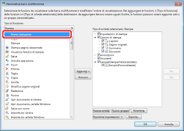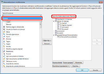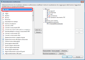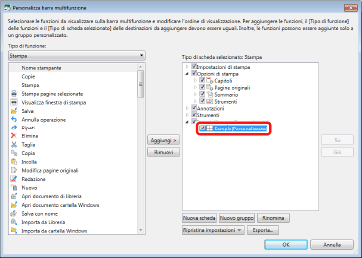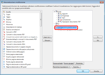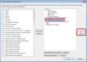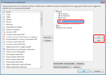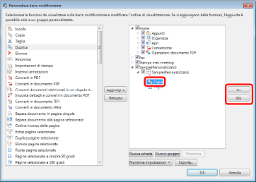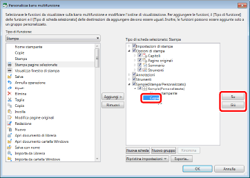 Per modificare l'ordine di visualizzazione di schede, gruppi e comandi aggiunti, selezionare la scheda, gruppo o comando di cui modificare l'ordine di visualizzazione nell'elenco a destra e fare clic su [Su]/[Giù].