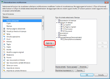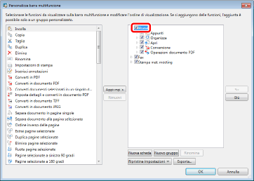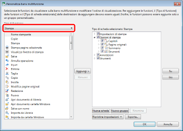 Per informazioni sull'aggiunta di nuove schede o nuovi gruppi alla barra multifunzione vedere di seguito.