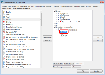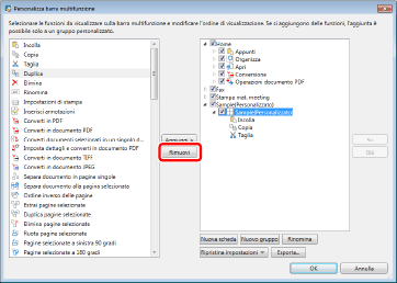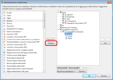Eliminazione di schede/gruppi aggiunti alla barra multifunzione