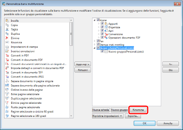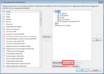 Aggiunta di nuovi gruppi alle barre multifunzione