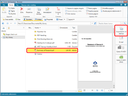 In Desktop Browser, selezionare i documenti da convertire in documento IWB e fare clic su [Impostazioni di stampa].