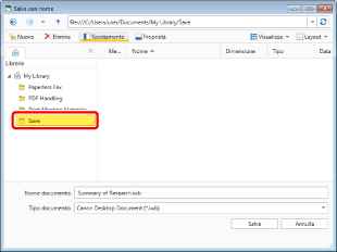 Selezionare il menu [File] > [Salva con nome] > [Salva in libreria].