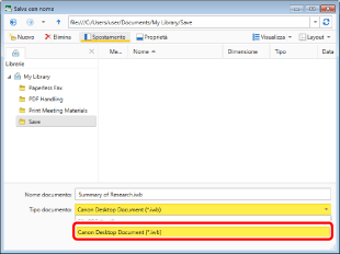Selezionare [Tipo documento] > [Canon Desktop Document (*.iwb)].